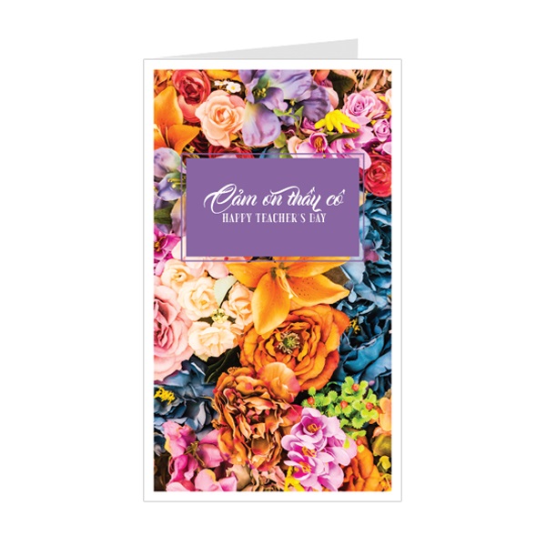 Tấm thiệp 20/11 với sắc hoa rực rỡ cùng cách phối màu tươi sáng giúp tấm thiệp trở nên sinh động và rạng rỡ hơn bao giờ hết. Mỗi bông hoa như lời tri ân, lời chúc tốt đẹp gửi đến người thầy, người cô đã gieo hạt tri thức và yêu thương trong mỗi học trò.