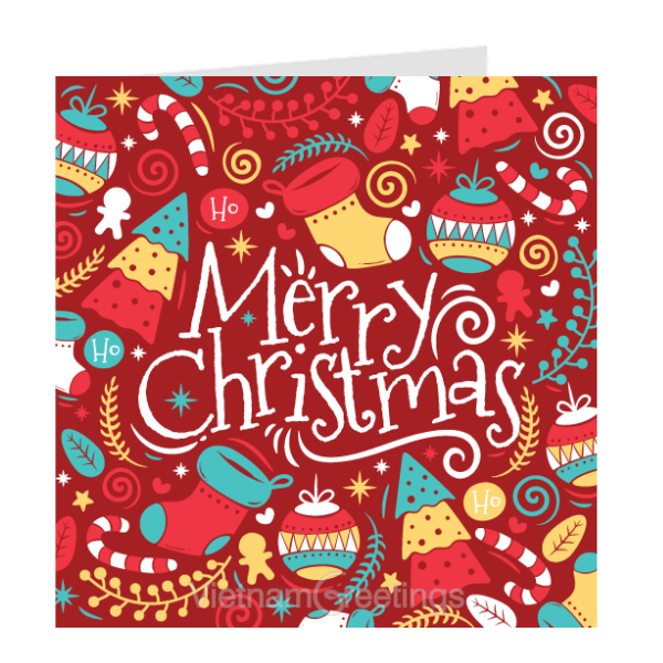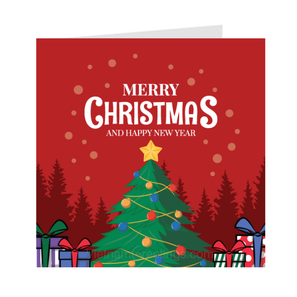 Thiệp Giáng Sinh, thiệp Noel – Thiệp Greenwood là mẫu thiệp tươi sáng, rộn ràng và giàu sắc màu lễ hội. Họa tiết cây thông, hoa tuyết, quà tặng và sắc đỏ – xanh truyền thống tạo nên tổng thể ấm áp, phù hợp với nhiều đối tượng người nhận.