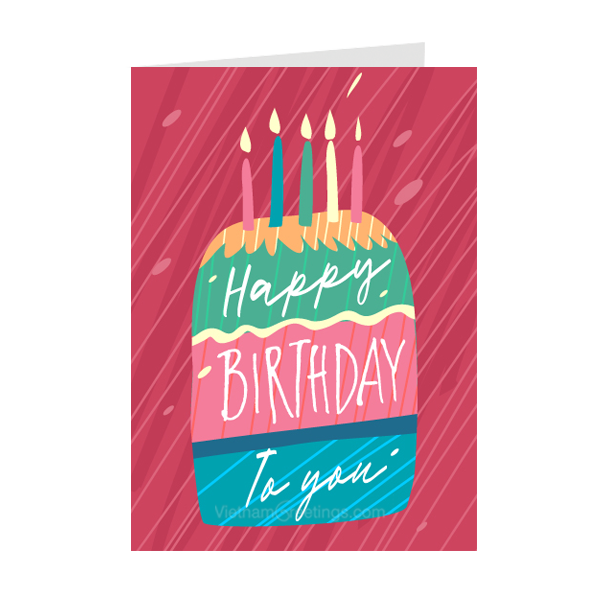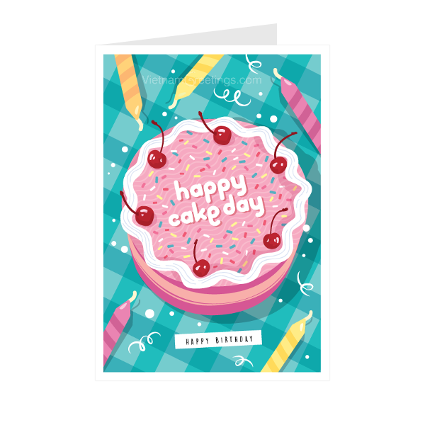 Tấm thiệp sinh nhật với hình ảnh chiếc bánh sinh nhật quen thuộc