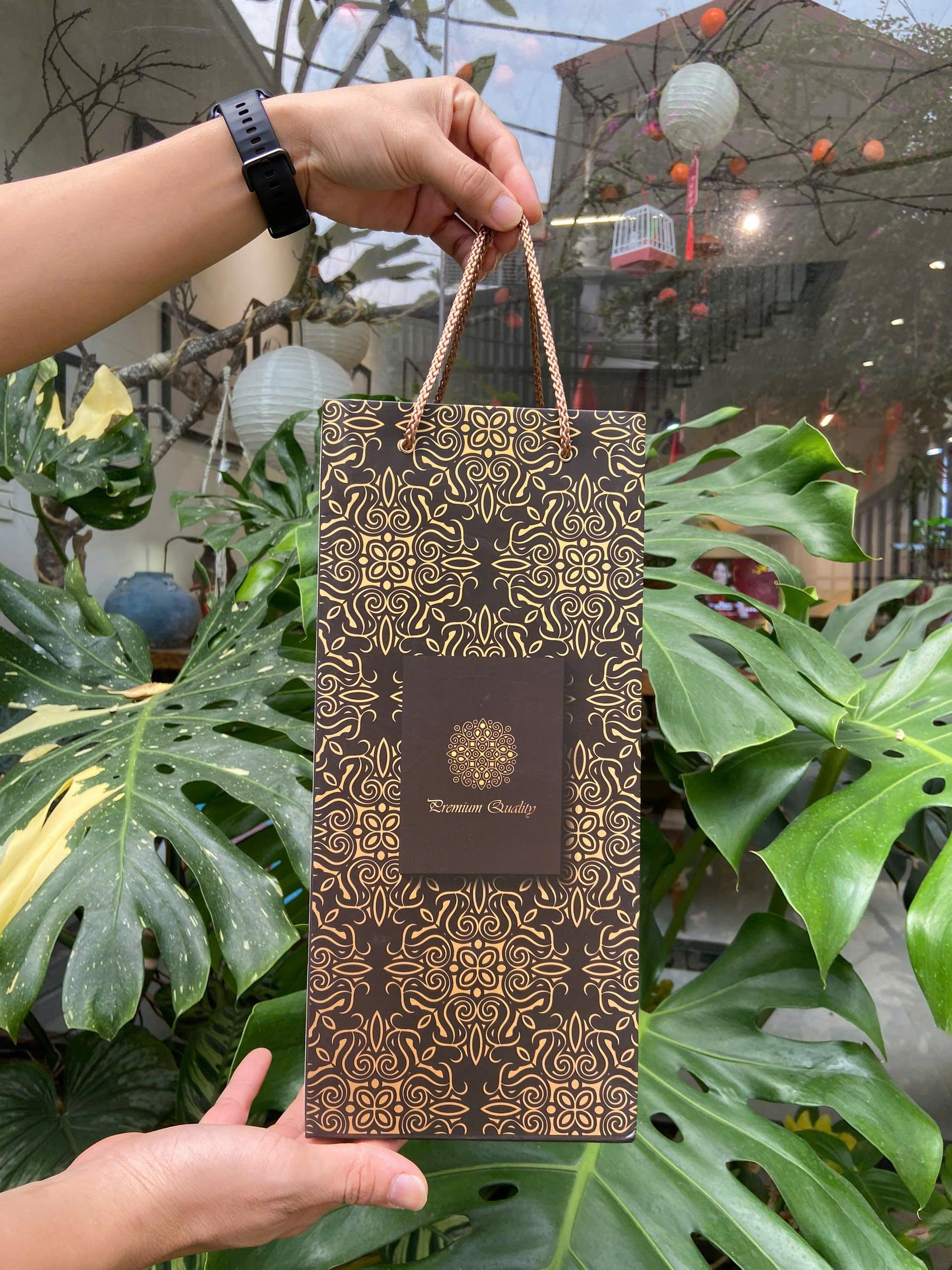 • Túi đựng rượu Greenwood được làm từ chất liệu giấy Ivory 250gsm cán mờ, dầy dặn, chắc chắn