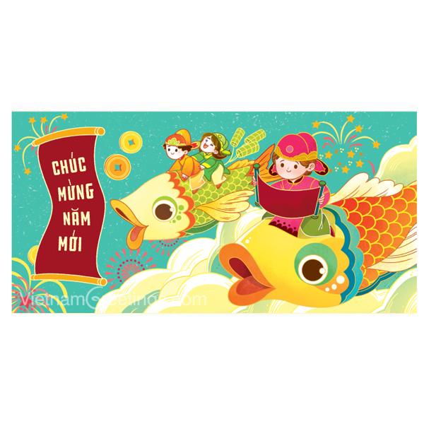 Bao lì xì ngang lấy cảm hứng từ câu chuyện "Táo quân" cưỡi cá chép chầu trời