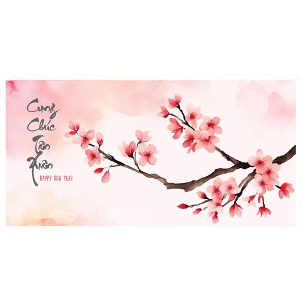 Bao lì xì ngang với sắc xuân nhẹ nhàng tô điểm cho cành đào thêm thắm