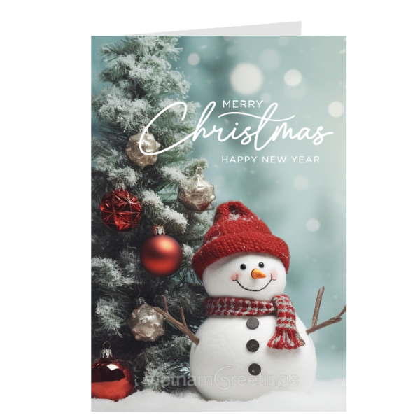 Tấm thiệp Noel với hình ảnh người tuyết dễ thương - món quà hoàn hảo cho mùa Giáng sinh ấm áp