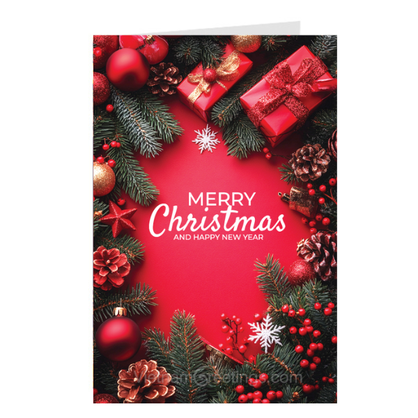 Thiệp Giáng sinh Greenwood KT 12x18 cm với tông màu đỏ rực rỡ, ấm áp